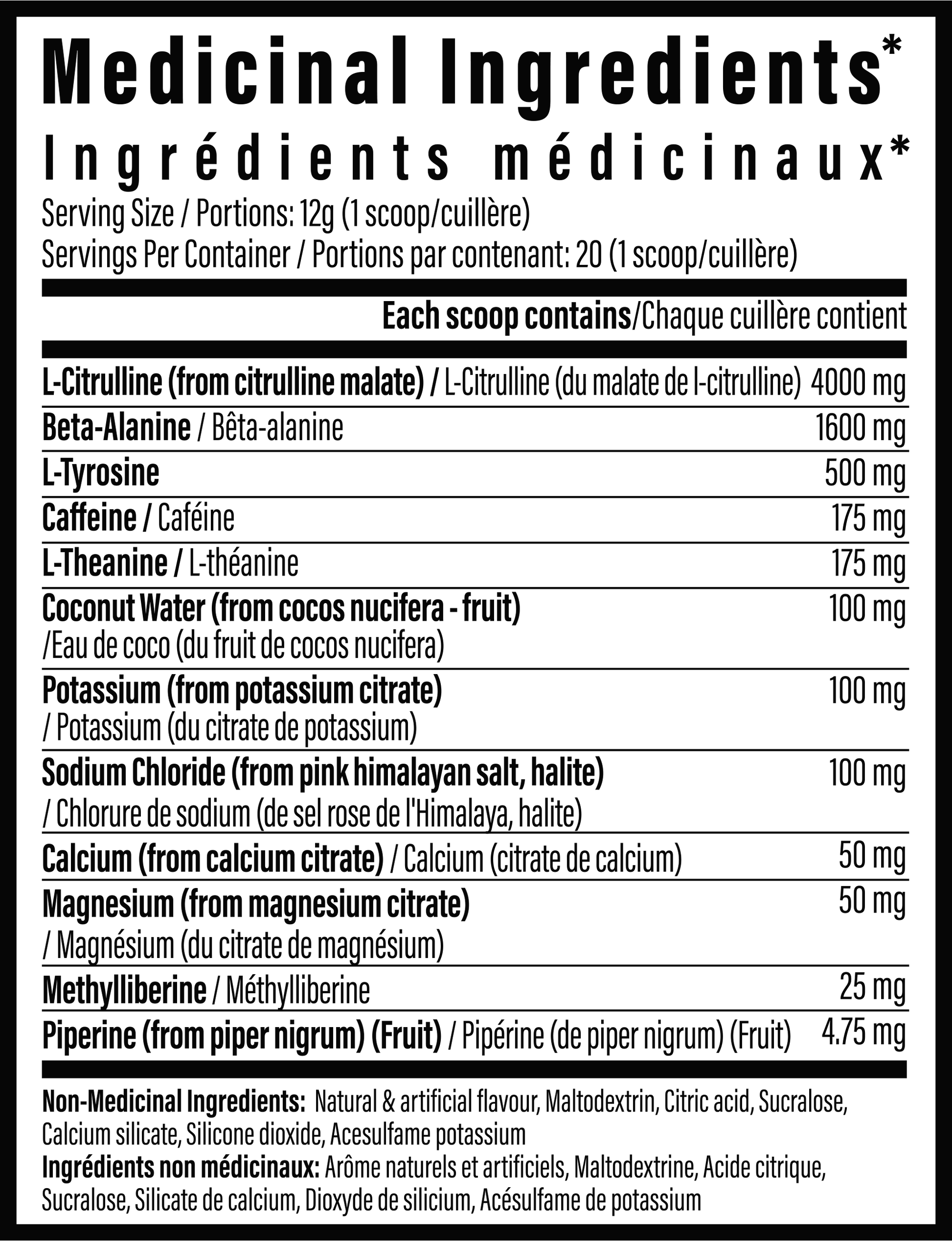 Adults (19 years and over): Take 1 scoop, 1 time per day 20-30 minutes prior to exercise. Mix product in enough liquid (water, juice, etc) to ensure that the powder is drinkable immediately before consumption.